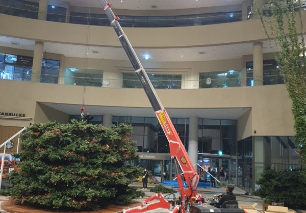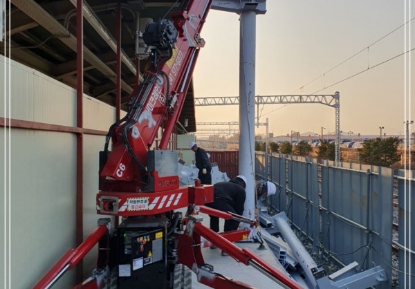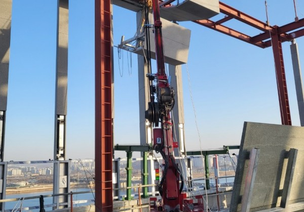 거미크레인 서울 호텔 로비 유리 터널 작업